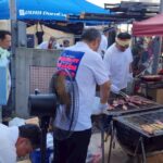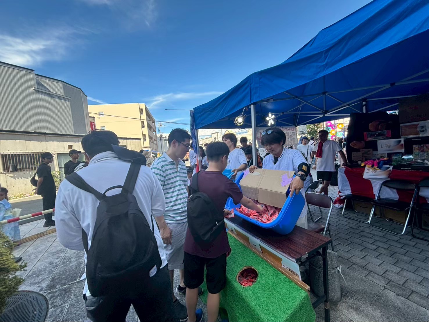 伊那まつり当日は、おまつり広場の一つとして、恒例の「100円くじ」に加え、さらに、OBの先輩方にもご出店いただき、いか焼きをはじめとする屋台が会場を大いに盛り上げ、多くのお客様で賑わいました。