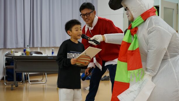 イベントのオープニングでは、サンタクロースに扮したメンバーが登場し、子どもたちへプレゼントを配布しました。会場は笑顔に包まれ、温かい雰囲気の中でイベントがスタートしました。